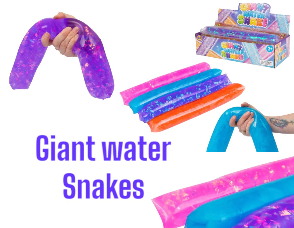 Introducing the Giant Water Wriggler - the ultimate sensory adventure in water play! Available in four vibrant colors - pink, purple, orange, and blue - and measuring a mighty 38cm, this wriggler features water-filled rubber tubes with swirly shiny liquid inside. Difficult to catch or hold, they spring unexpectedly out of the holder's grip, adding an exciting challenge to playtime. An addictive fiddle toy that keeps you engaged and entertained